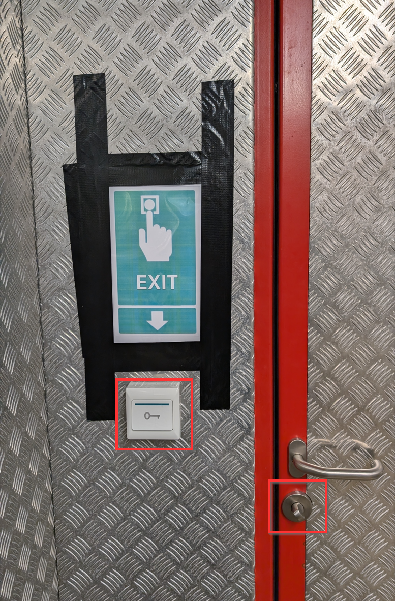 Ontgrendel de deur door middel van het vrij-bezet slot en klik vervolgens op de drukknop naast de deur om het magnetisch slot te ontgrendelen.